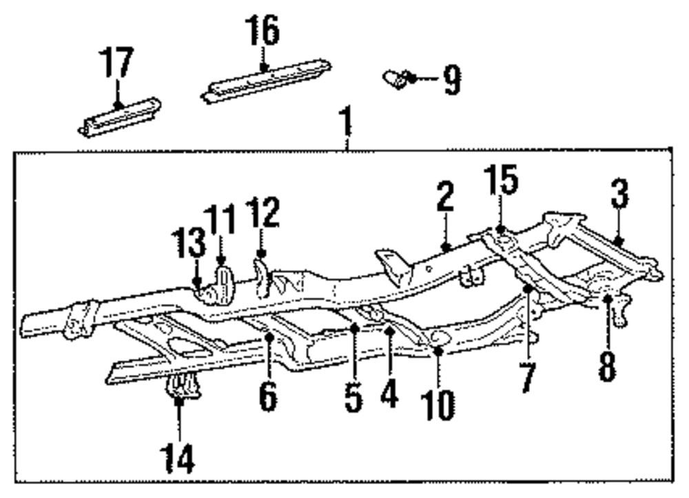 2wd, 1994-99, frame & crossmembers, upper control arm. 2wd, 2000-02, frame & crossmembers, upper control arm.